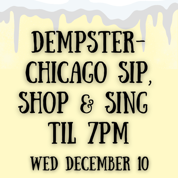 Enjoy the holiday song stylings of the Frozen Robins carolers, who will be strolling Dempster & Chicago on the 10th. The following shops will be staying open until 7pm, offering sips and snacks: