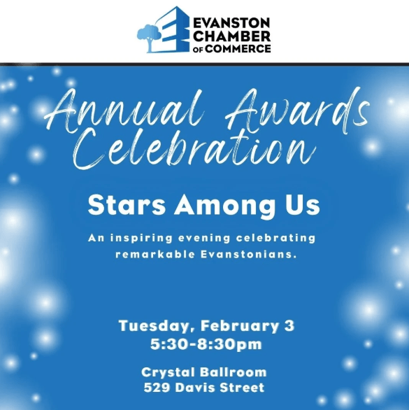 At this inspiring event, the Evanston Chamber of Commerce will recognize the winners of three community-nominated awards, honoring individuals who make a meaningful impact in Evanston. Guests will also enjoy the elegance of the Crystal Ballroom, a delicious three-course meal, exciting silent auction packages, and a dynamic program featuring additional awards, recognitions, and milestones. This is truly an event you won’t want to miss!